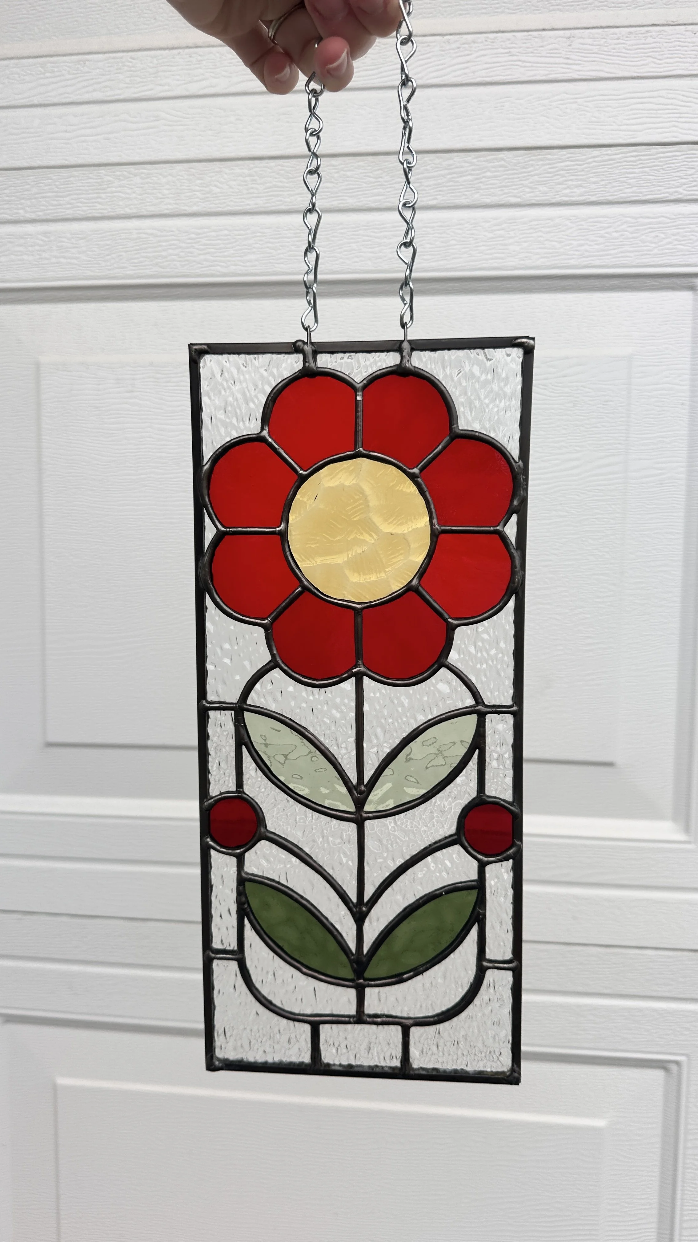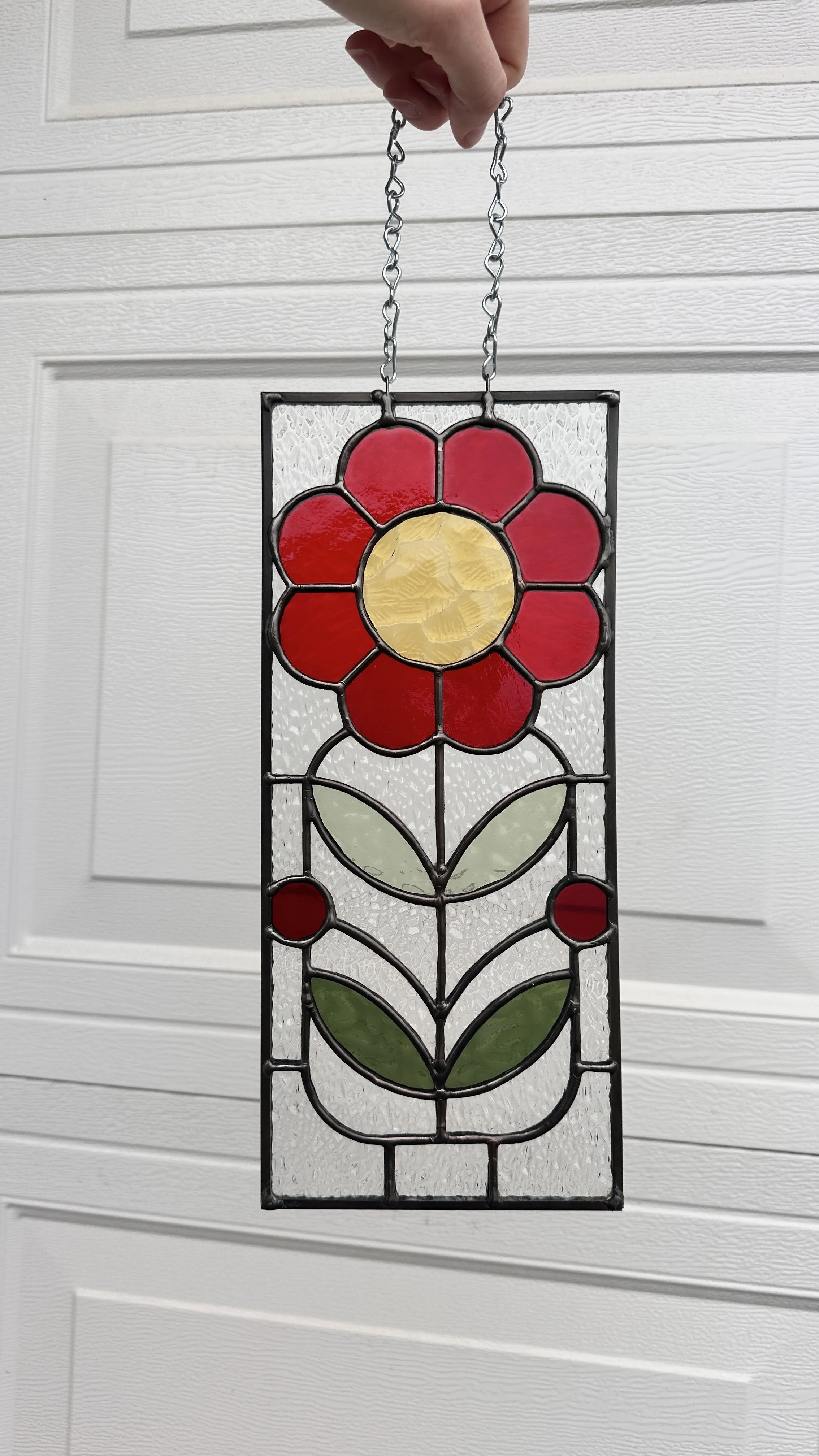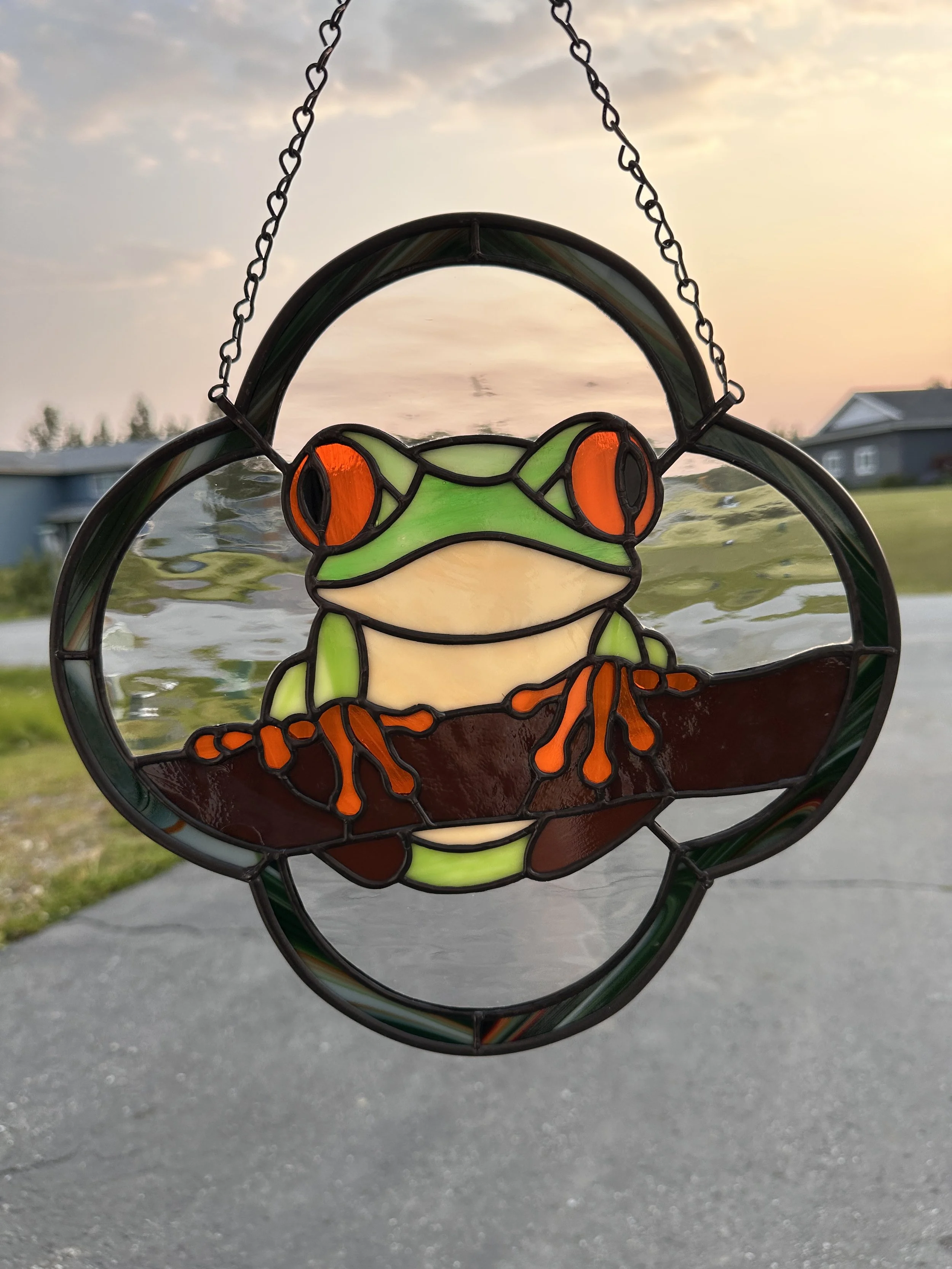 Brighten your window with this minimalist stained glass sun catcher featuring a simple, sunny fried egg design that adds a whimsical touch to any space.