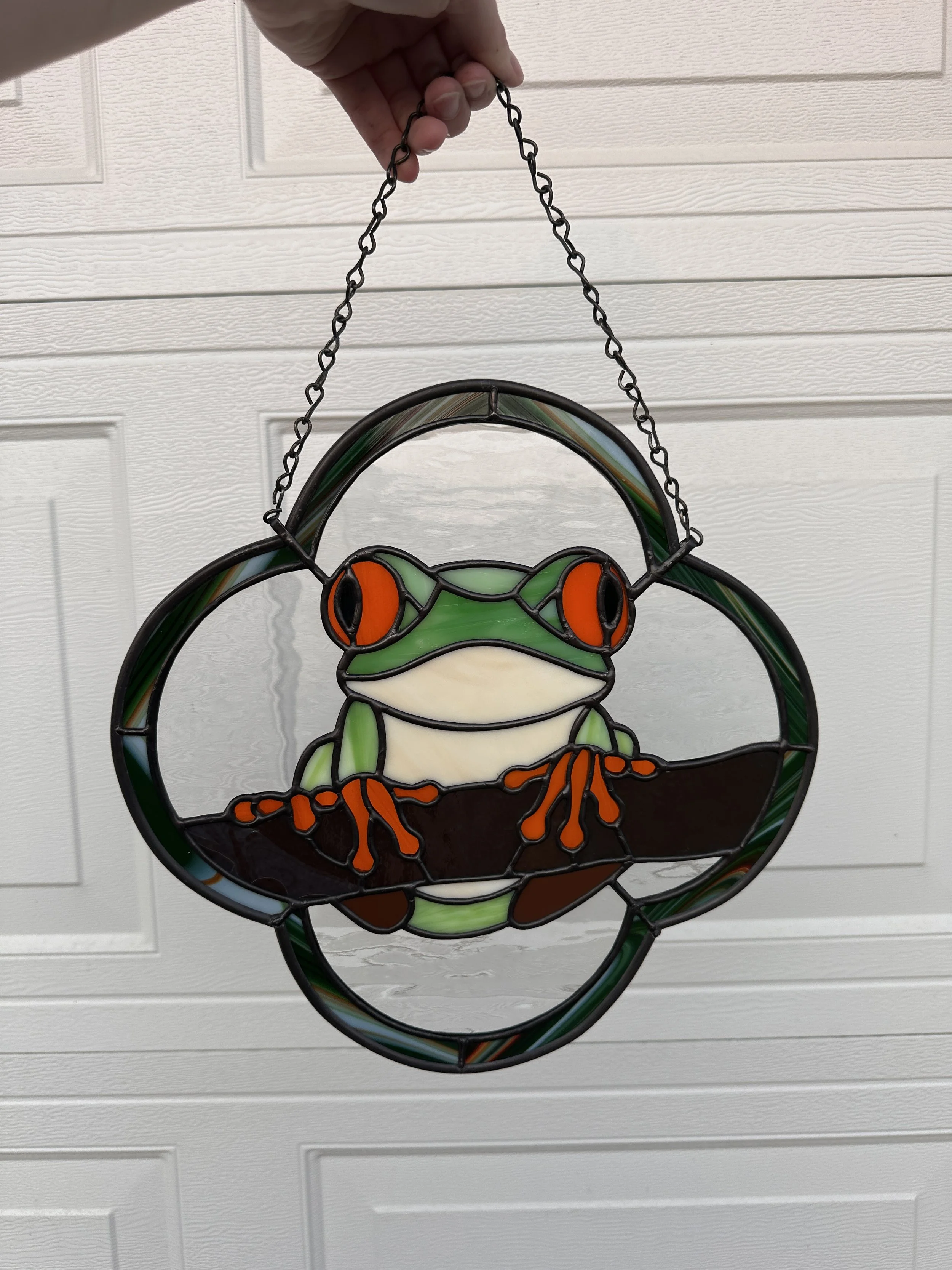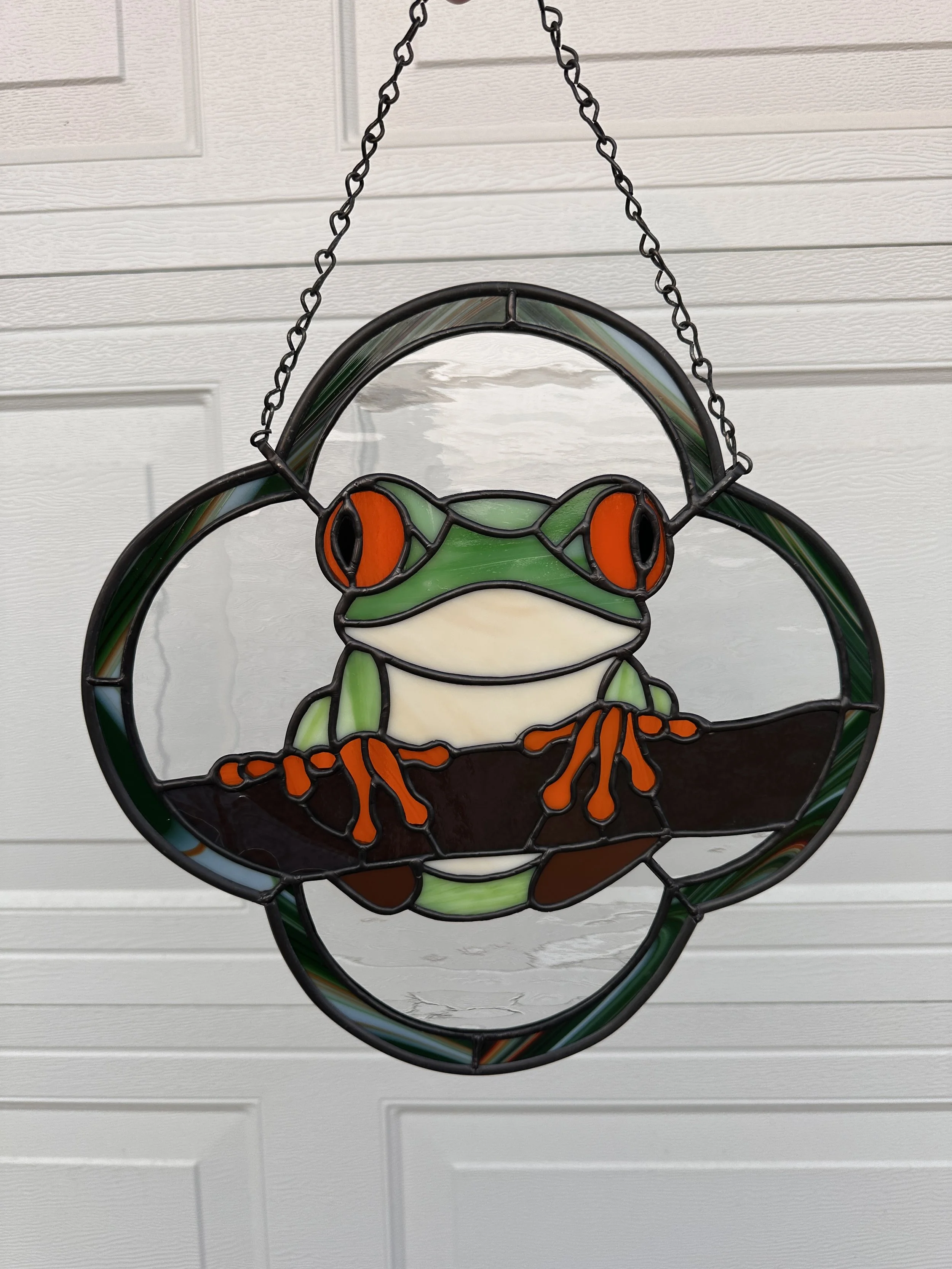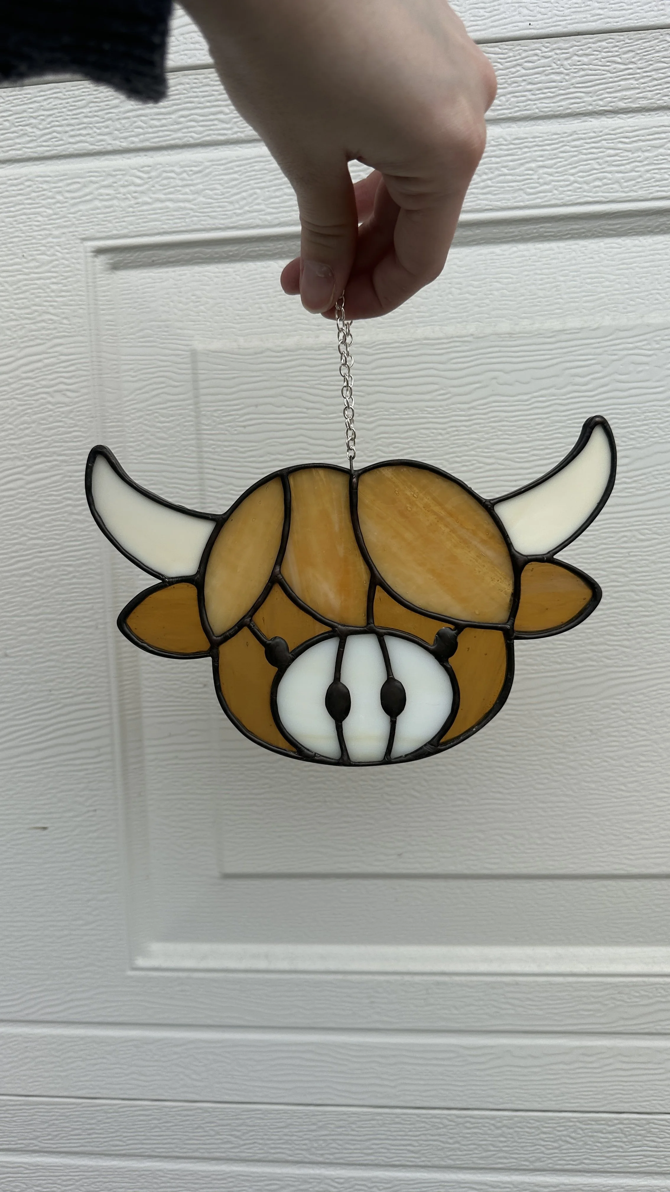 Brighten your window with this minimalist stained glass sun catcher featuring a simple, sunny fried egg design that adds a whimsical touch to any space.